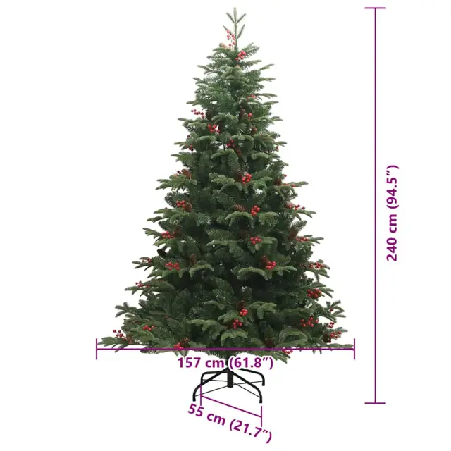 vidaXL Umestno božično drevo Zelena 240 cm PVC, kovina in plastika