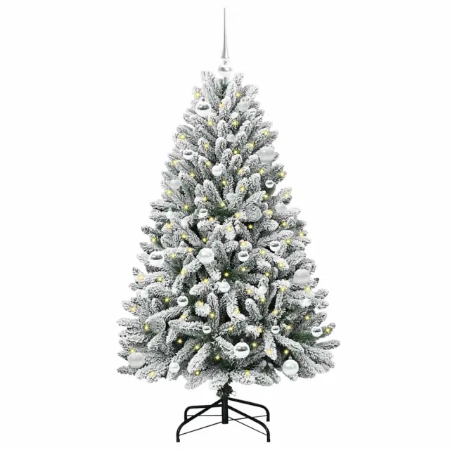 vidaXL Umestno božično drevo Zelena in Bela 150 cm PVC in kovina