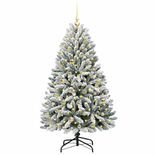 vidaXL Umestno božično drevo Zelena in Bela 150 cm PVC in kovina