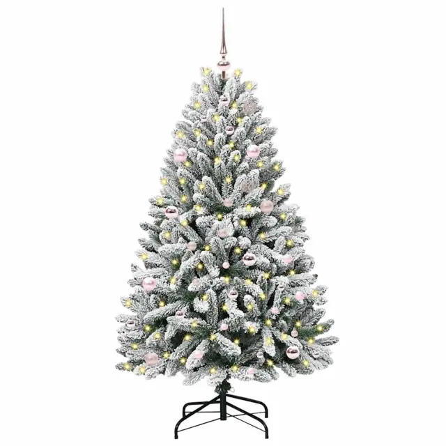 vidaXL Umestno božično drevo Zelena in Bela 150 cm PVC in kovina