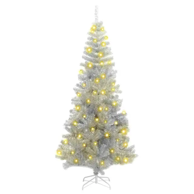 vidaXL Umetna božična drevesa z LED lučmi srebrna 180 cm PET
