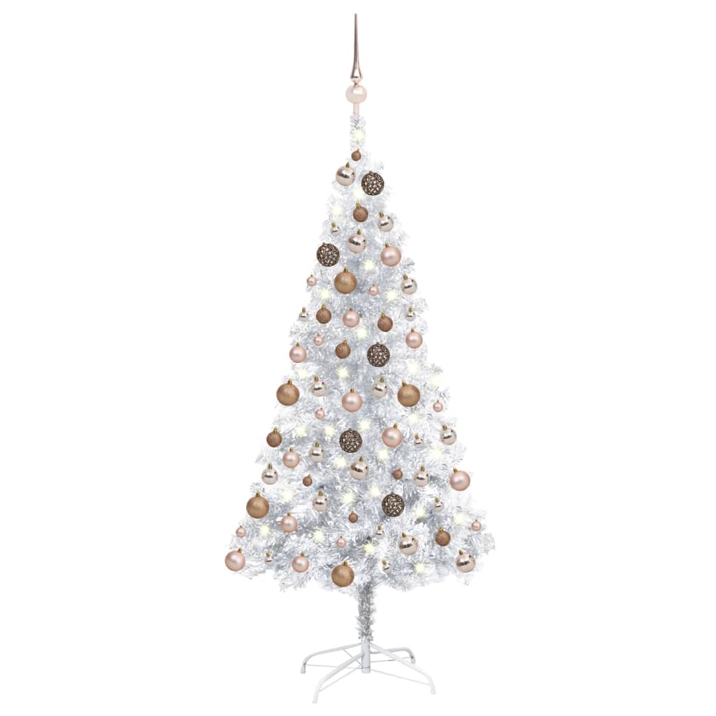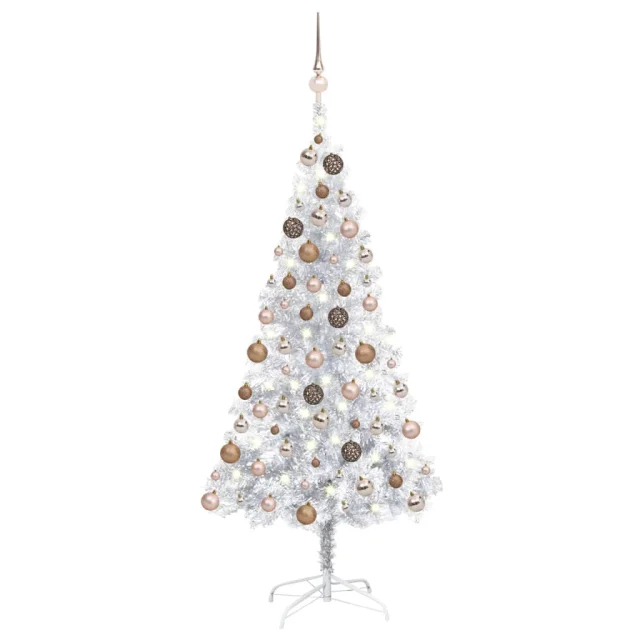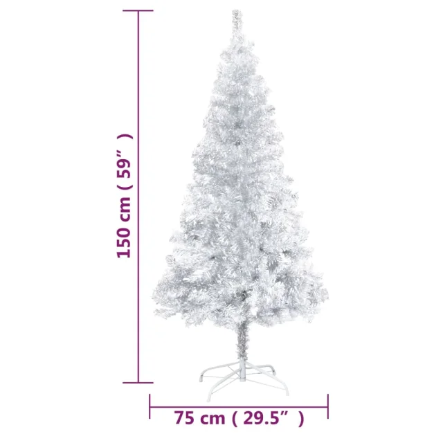vidaXL Umetna osvetljena novoletna jelka z bunkicami srebrna 150cm PET