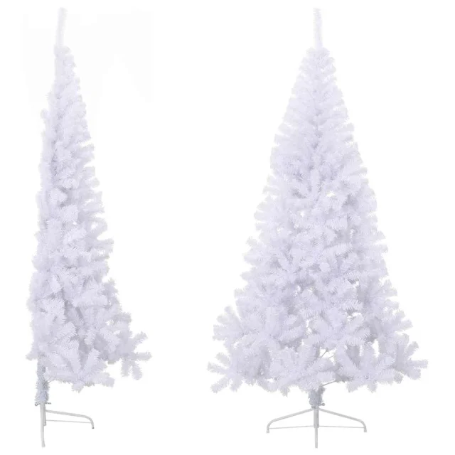 vidaXL Umetna polovična novoletna jelka s stojalom bela 180 cm PVC
