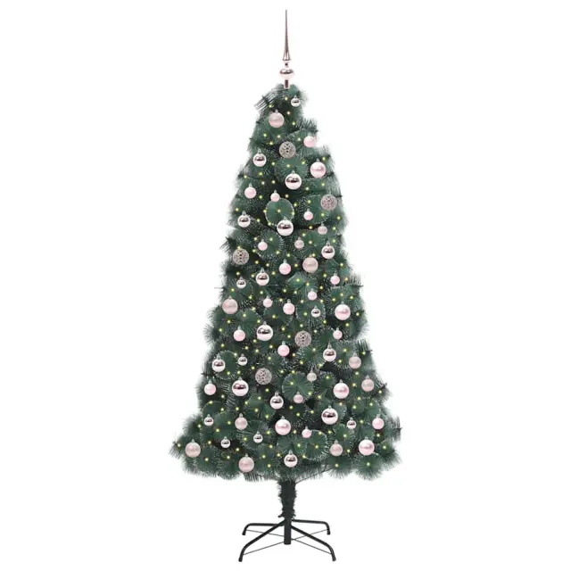vidaXL Umetna predhodno osvetljena božična jelka s setom kroglic