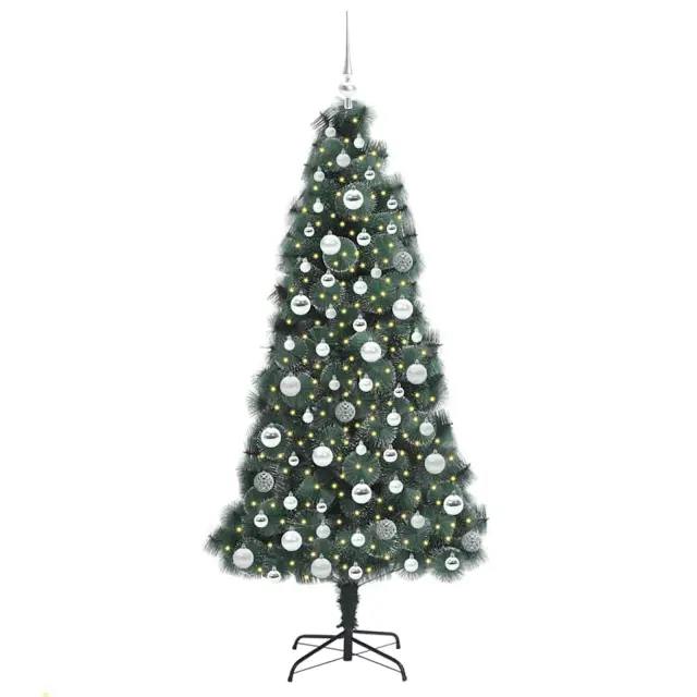 vidaXL Umetno predhodno osvetljeno božično drevo s setom žogic 180 cm