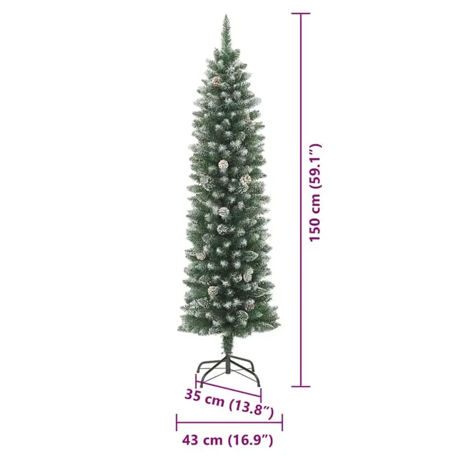 vidaXL Umetno vitko božično drevo med 150 LED z stojalom Zelena 150 cm