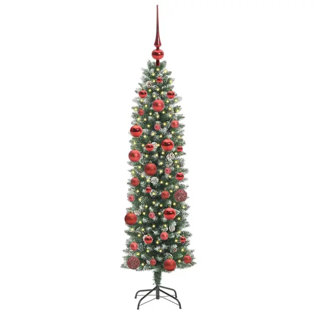 vidaXL Umetno vitko božično drevo med 150 LED Zelena in bela 150 cm