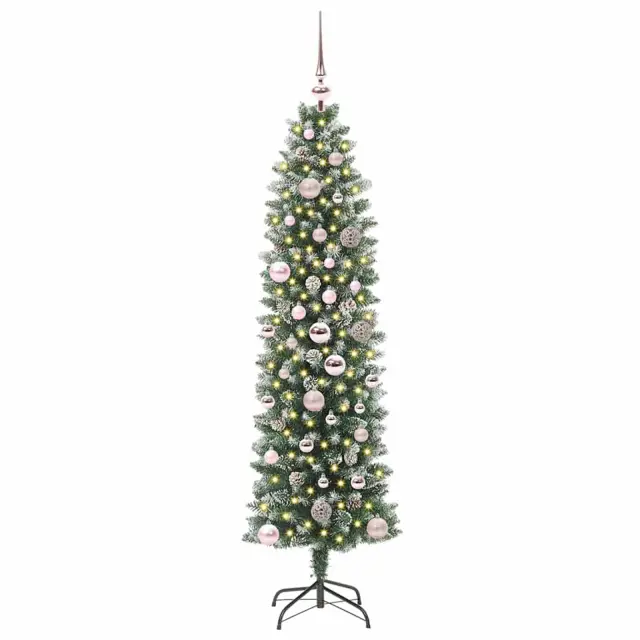 vidaXL Umetno vitko božično drevo med 150 LED Zelena in bela 150 cm