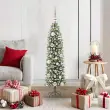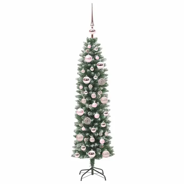 vidaXL Umetno vitko božično drevo med 150 LED Zelena in bela 120 cm