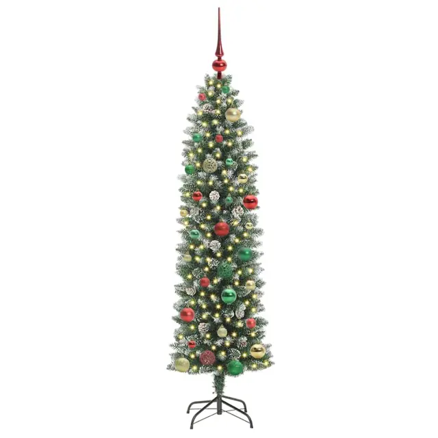 vidaXL Umetno vitko božično drevo med 150 LED Zelena in bela 150 cm