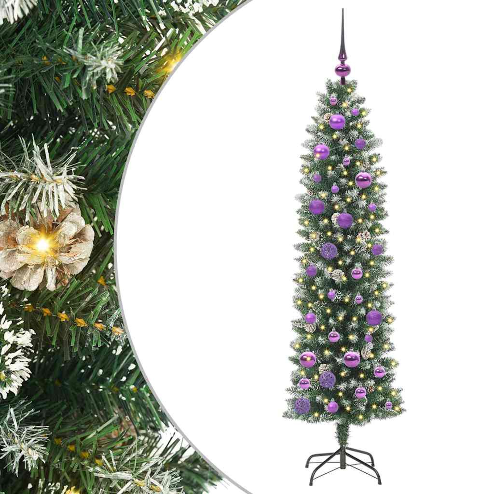 vidaXL Umetno vitko božično drevo med 150 LED Zelena in bela 150 cm