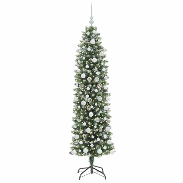 Ta umetna vitka božična jelka združuje moderni stil z realističnim izgledom, kar jo dela privlačno izbiro za tvojo sezonsko dekoracijo. Njena vitka stožčasta oblika se brez težav prilega katerikoli dnevni sobi, kar jo dela idealno za manjše prostore ali stanovanja. S PVC in kovinsko konstrukcijo ta jelka ne samo da posnema naravno lepoto tradicionalnega bora, ampak je tudi trdna za dolgotrajno uporabo. Uživaj v toplem sijaju LED trakov, ki prinašajo veselo vzdušje na družinske ob Gatherings, praznična druženja in prijetne noči.