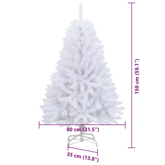 vidaXL Umetno Zložljivo Božično Drevo Bela 150 cm PVC in jeklo