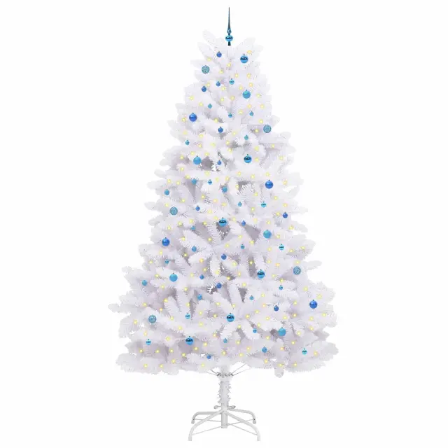 vidaXL Umetno Zložljivo Božično Drevo Bela 300 cm PVC in jeklo