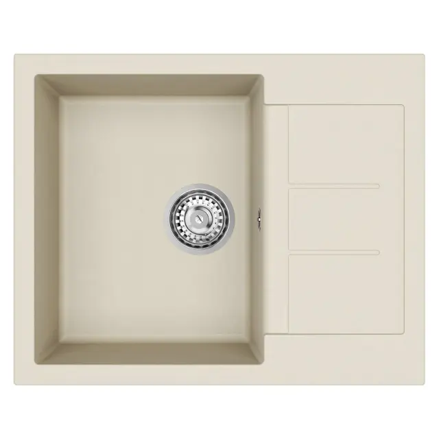 • Materiali: Umivalnik je narejen iz 80% kvartsov in 20% smole za večjo moč in odpornost. Ta trdna sestava zagotavlja odlično odpornost na udarce in praske, kar pomeni, da umivalnik ob redni uporabi v kuhinji vedno izgleda odlično.