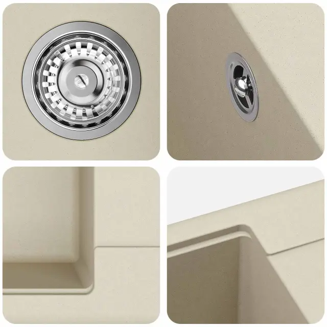 Ta moderna kuhinjska umivalnik je prava izbira za elegantne kuhinje, saj združuje funkcionalnost s sleek dizajnom. Izdelan iz granita, je super trpežen in se lepo povezuje z različnimi stili notranjosti, kar prinaša tako estetsko privlačnost kot praktičnost. Preprost pravokoten dizajn se enostavno integrira v kuhinje in nudi trajnost ter odpornost pri vsakodnevni uporabi.