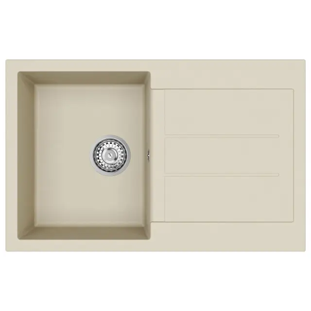 • Materiali: Umivalnik je narejen iz 80% kvartsov in 20% smole za večjo moč in odpornost. Ta trdna sestava zagotavlja odlično odpornost na udarce in praske, kar pomeni, da umivalnik ob redni uporabi v kuhinji vedno izgleda odlično.