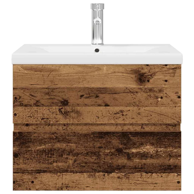 vidaXL umivalnik z vgrajenim umivalnikom in pipo Stari les
