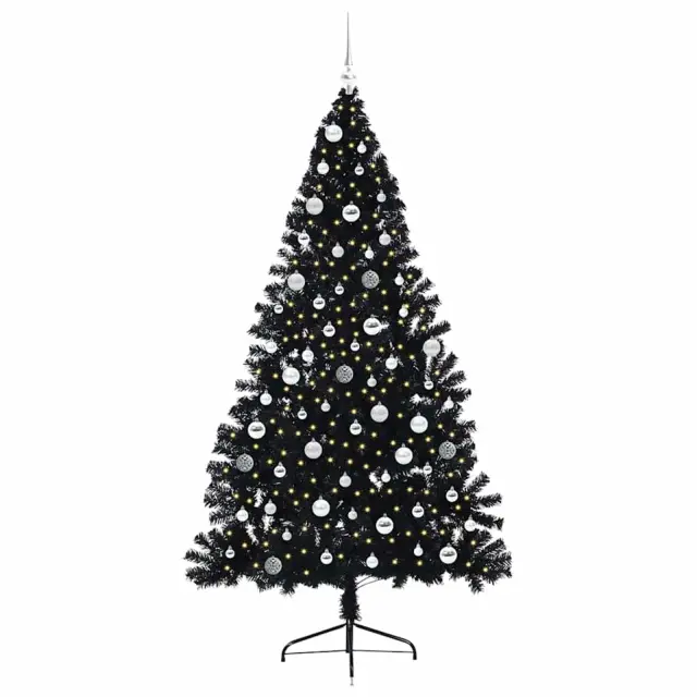 vidaXL Umjetna preddekorirana božićna jelka Črna 210 cm PVC