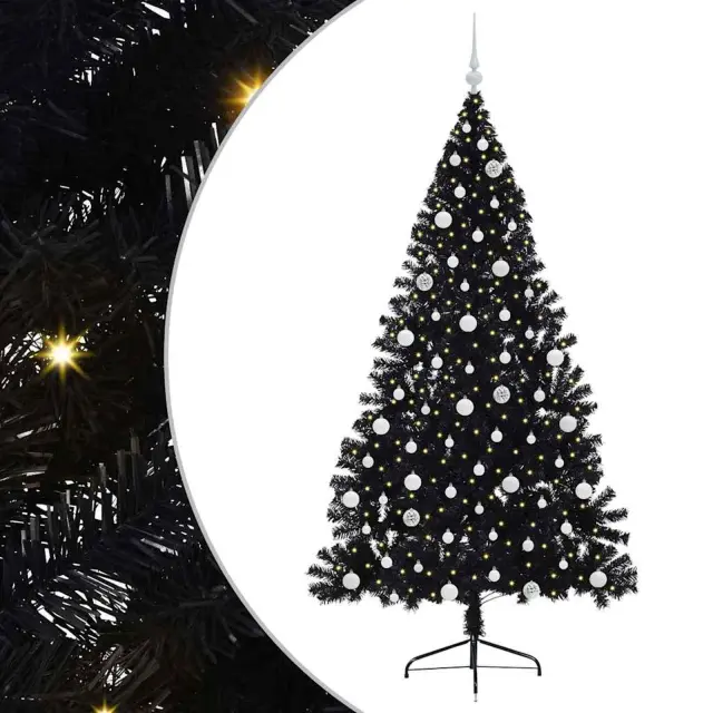 vidaXL Umjetna preddekorirana božićna jelka Črna 210 cm PVC