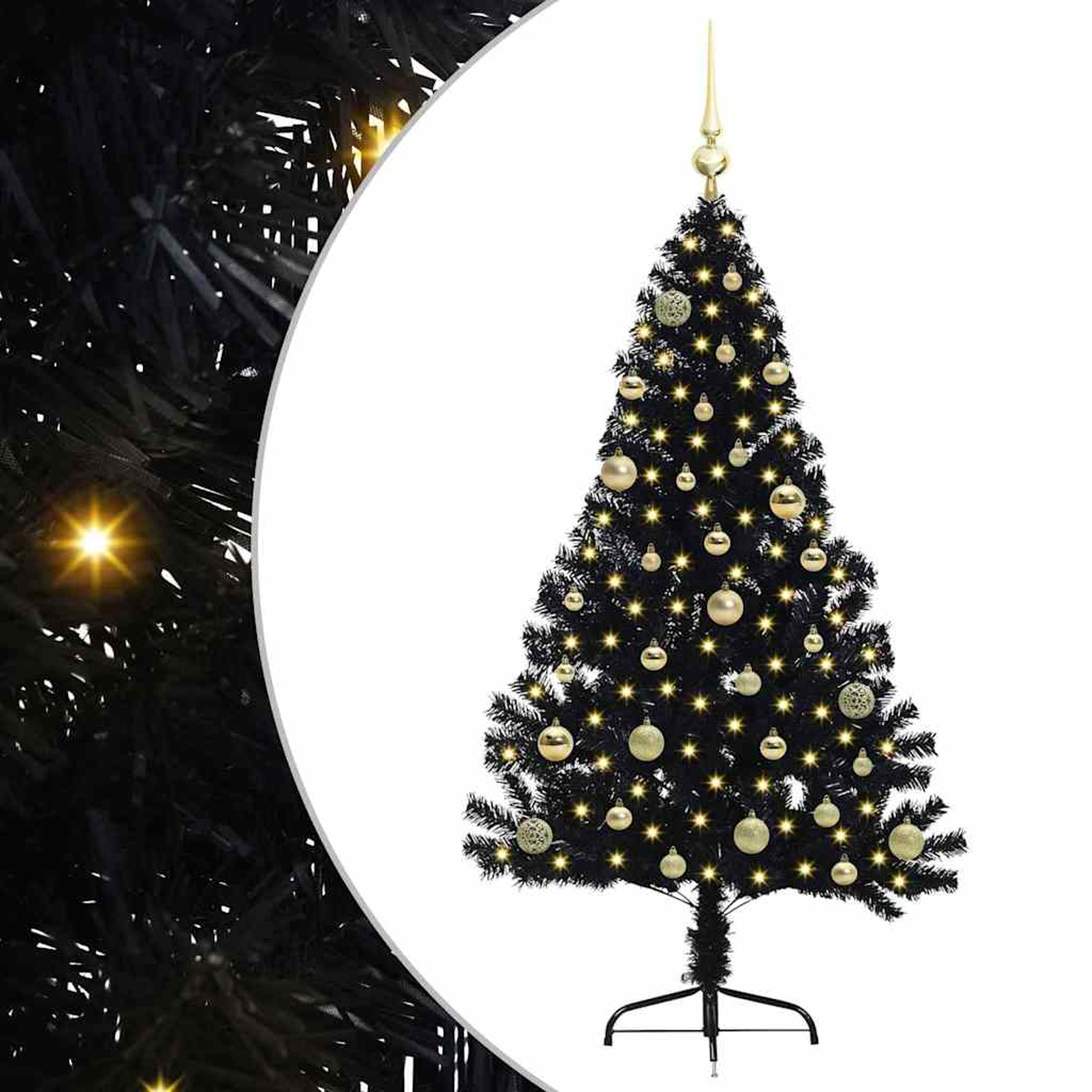 vidaXL Umjetna preddekorirana božićna jelka Črna 150 cm PVC