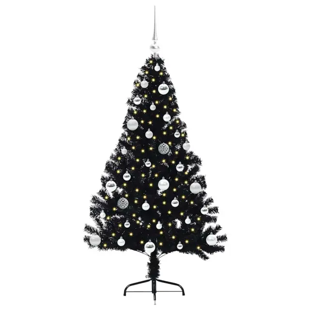 vidaXL Umjetna preddekorirana božićna jelka Črna 150 cm PVC