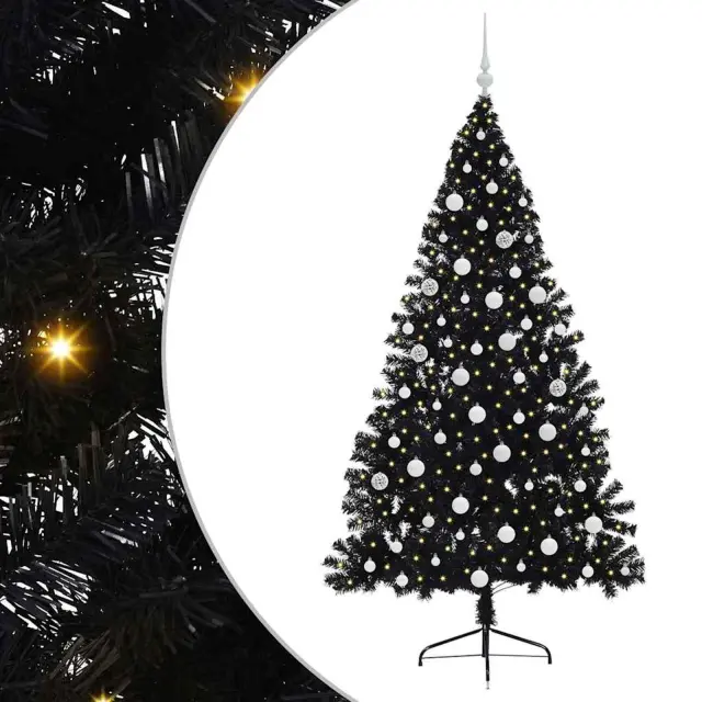 vidaXL Umjetna preddekorirana božićna jelka Črna 180 cm PVC