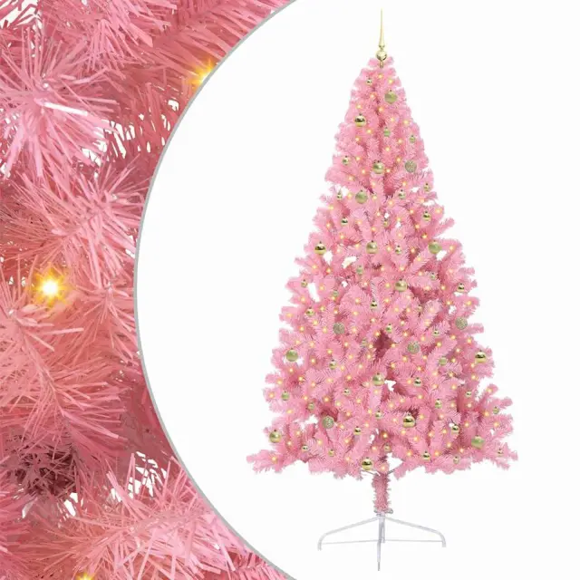 vidaXL Umjetna preddekorirana božićna jelka Roza 240 cm PVC