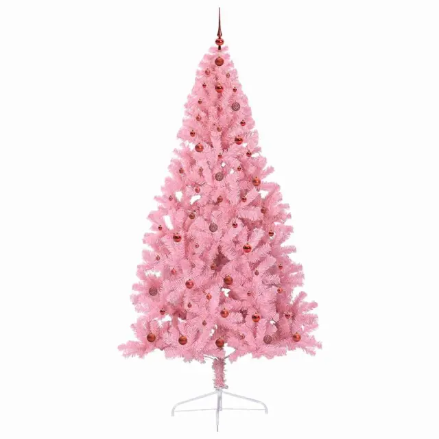 vidaXL Umjetna preddekorirana božićna jelka Roza 240 cm PVC