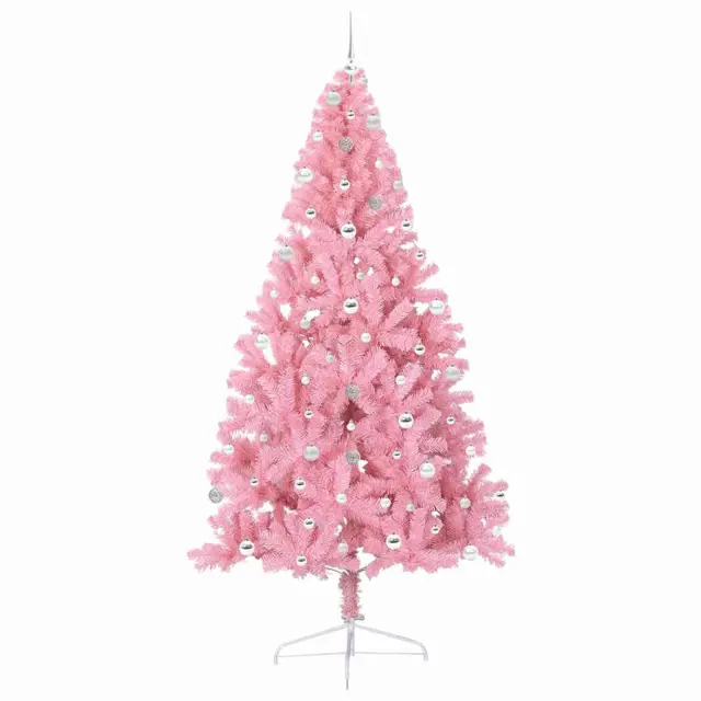 vidaXL Umjetna preddekorirana božićna jelka Roza 240 cm PVC
