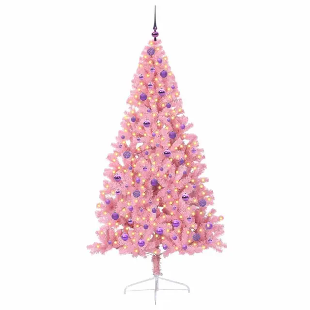 vidaXL Umjetna preddekorirana božićna jelka Roza 210 cm PVC