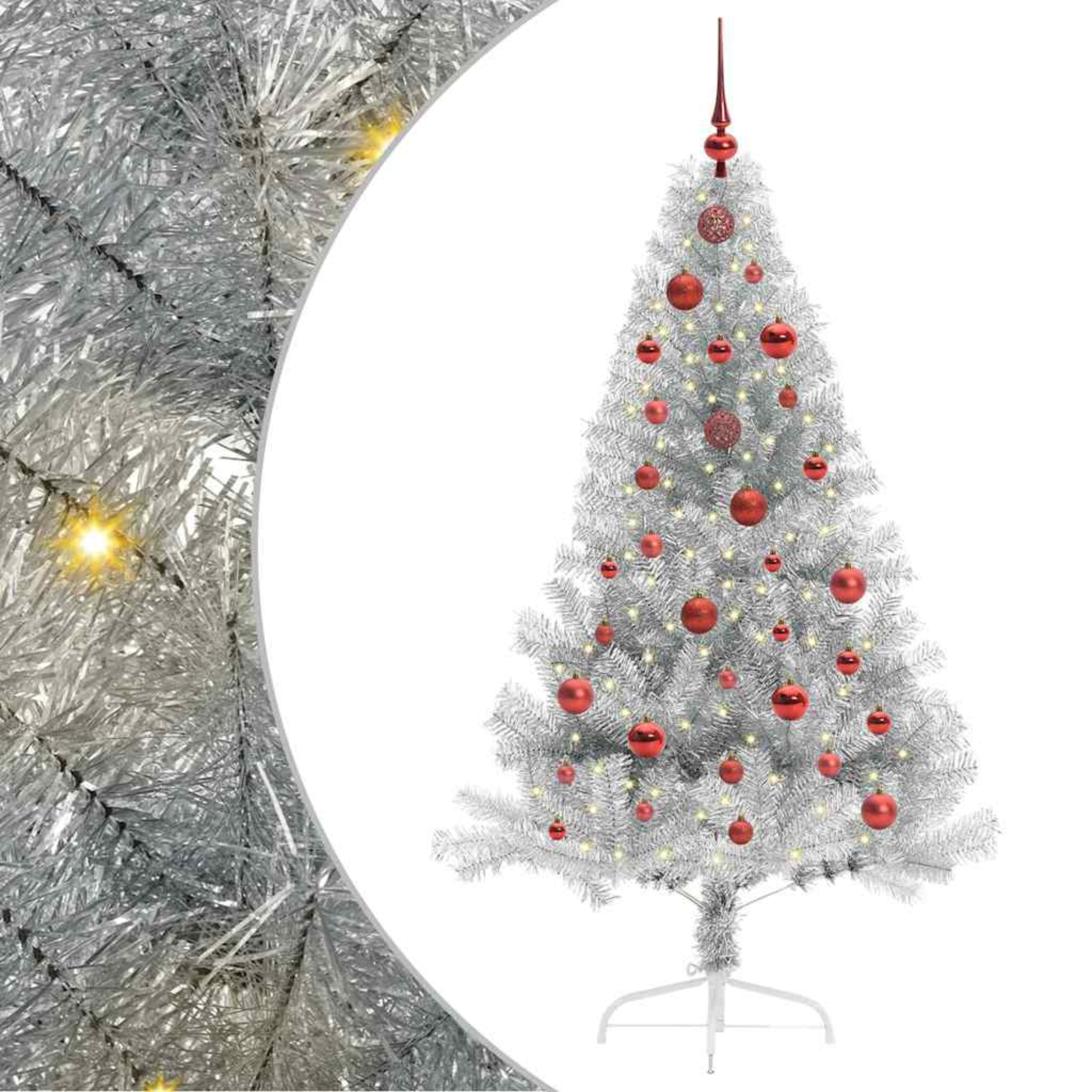 vidaXL Umjetna preddekorirana božićna jelka srebrna 150 cm PET