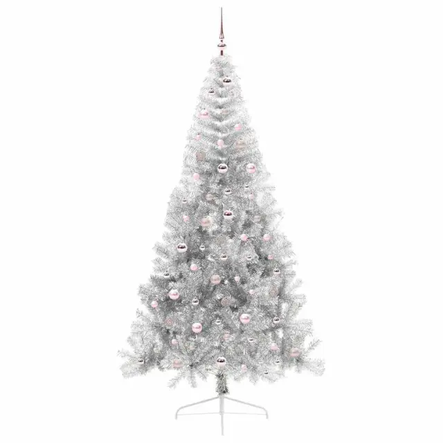 vidaXL Umjetna preddekorirana božićna jelka srebrna 240 cm PET