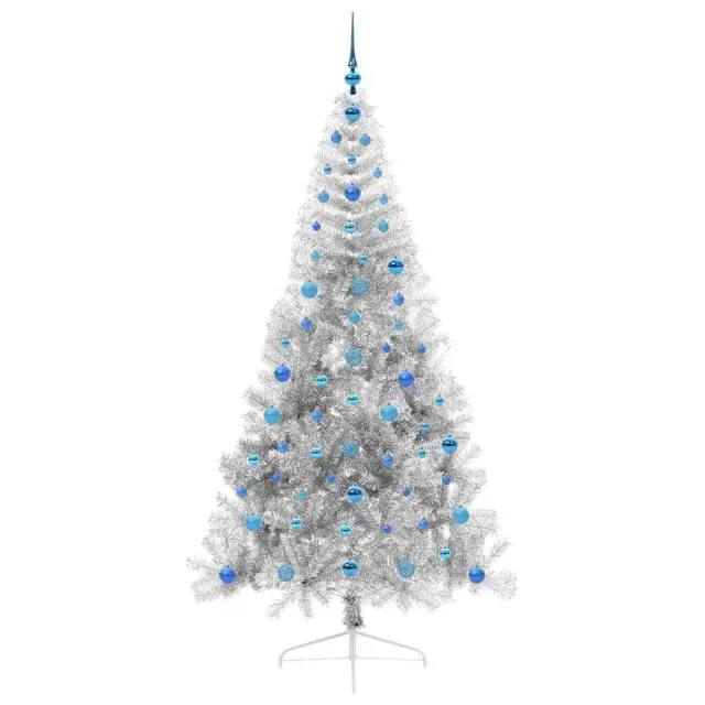 vidaXL Umjetna preddekorirana božićna jelka srebrna 210 cm PET