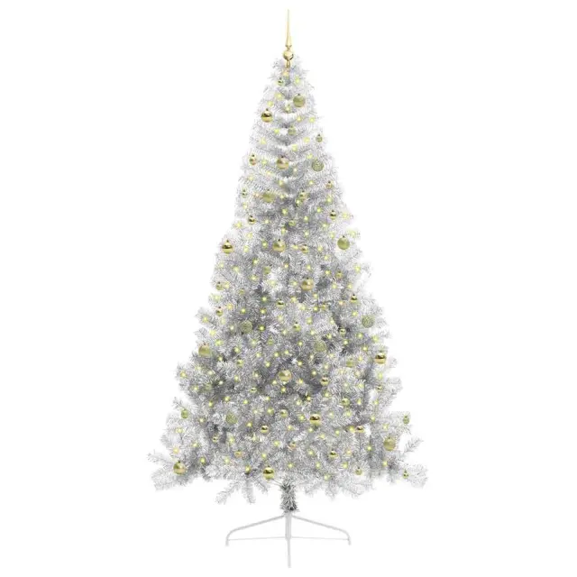 vidaXL Umjetna preddekorirana božićna jelka srebrna 240 cm PET