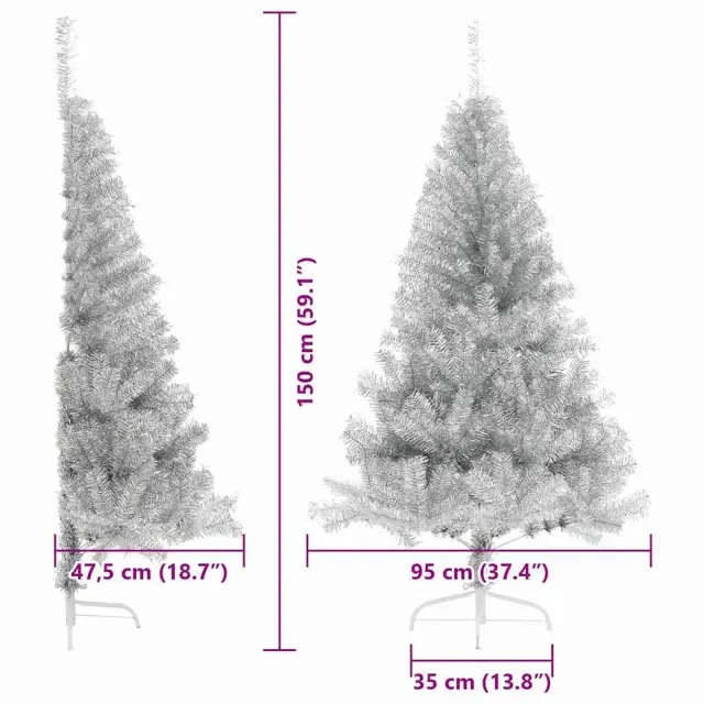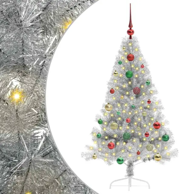vidaXL Umjetna preddekorirana božićna jelka srebrna 150 cm PET