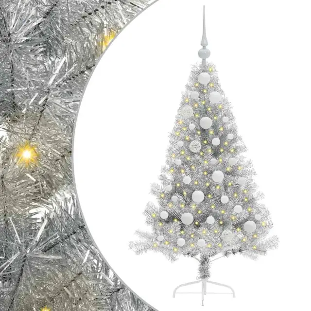 vidaXL Umjetna preddekorirana božićna jelka srebrna 120 cm PET