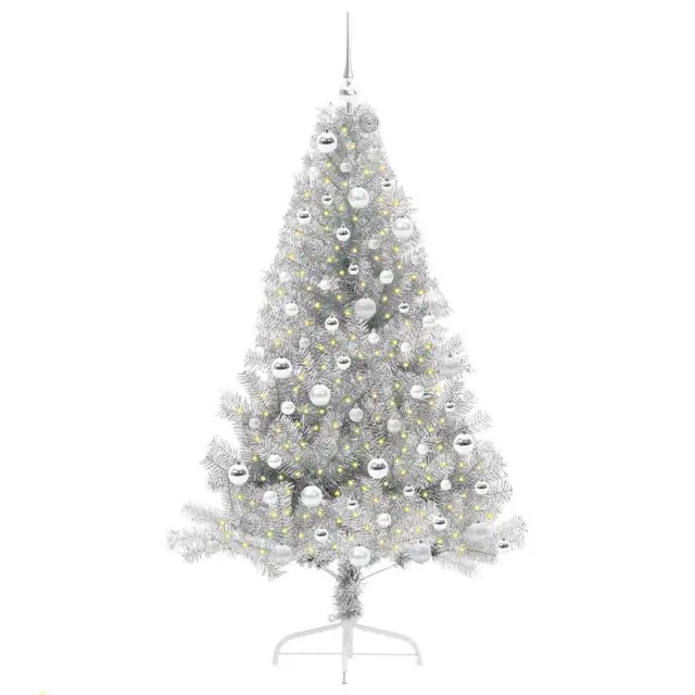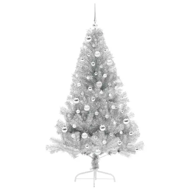vidaXL Umjetna preddekorirana božićna jelka srebrna 180 cm PET