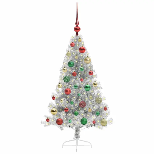 vidaXL Umjetna preddekorirana božićna jelka srebrna 120 cm PET