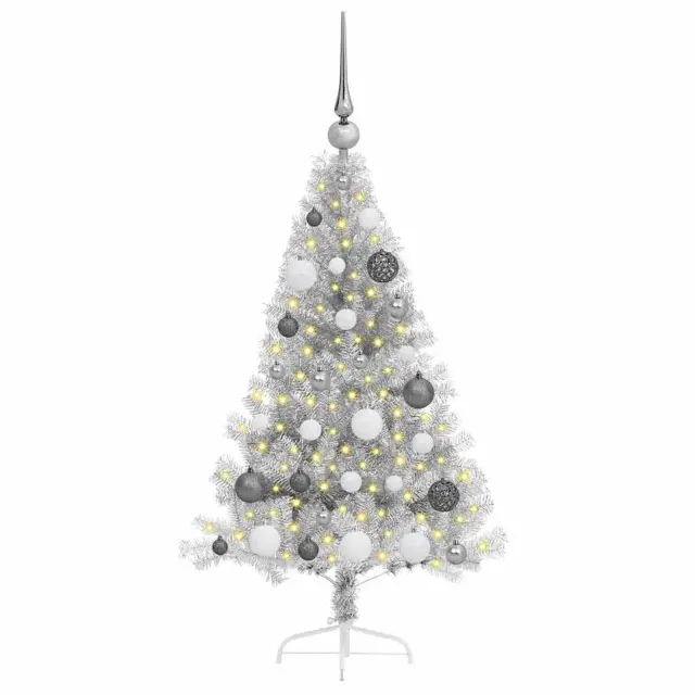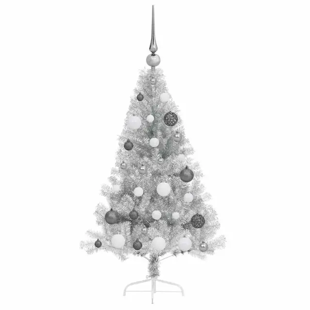 vidaXL Umjetna preddekorirana božićna jelka srebrna 120 cm PET