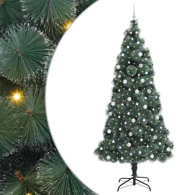 vidaXL Umjetna predhodno osvetljena božična jelka s setom kroglic