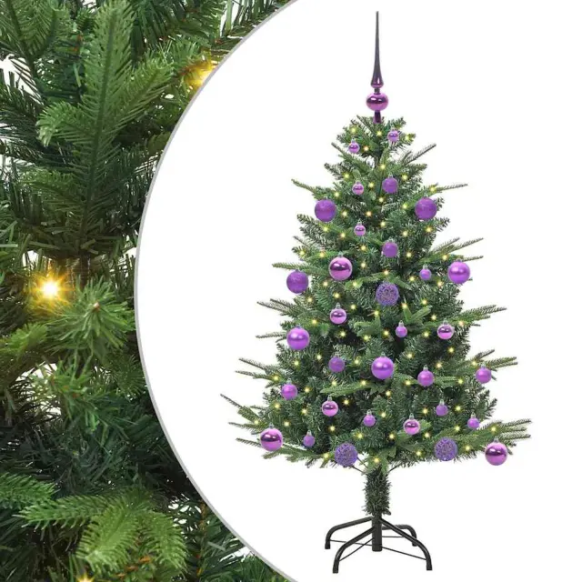 vidaXL Umjetna predsvetljena božićna jelka s kompletom kroglica Zelena