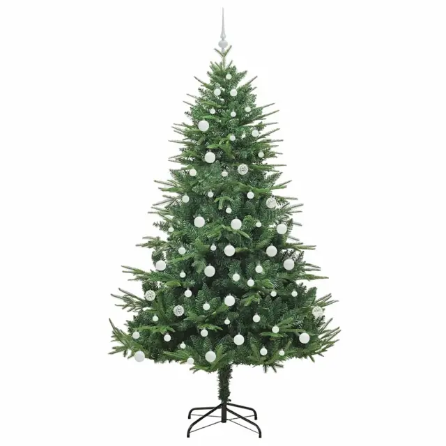vidaXL Umjetna predsvetljena božićna jelka s kompletom kroglica Zelena