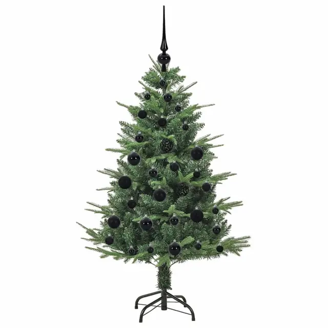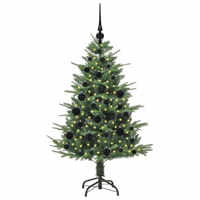 vidaXL Umjetna predsvetljena božićna jelka s kompletom kroglica Zelena