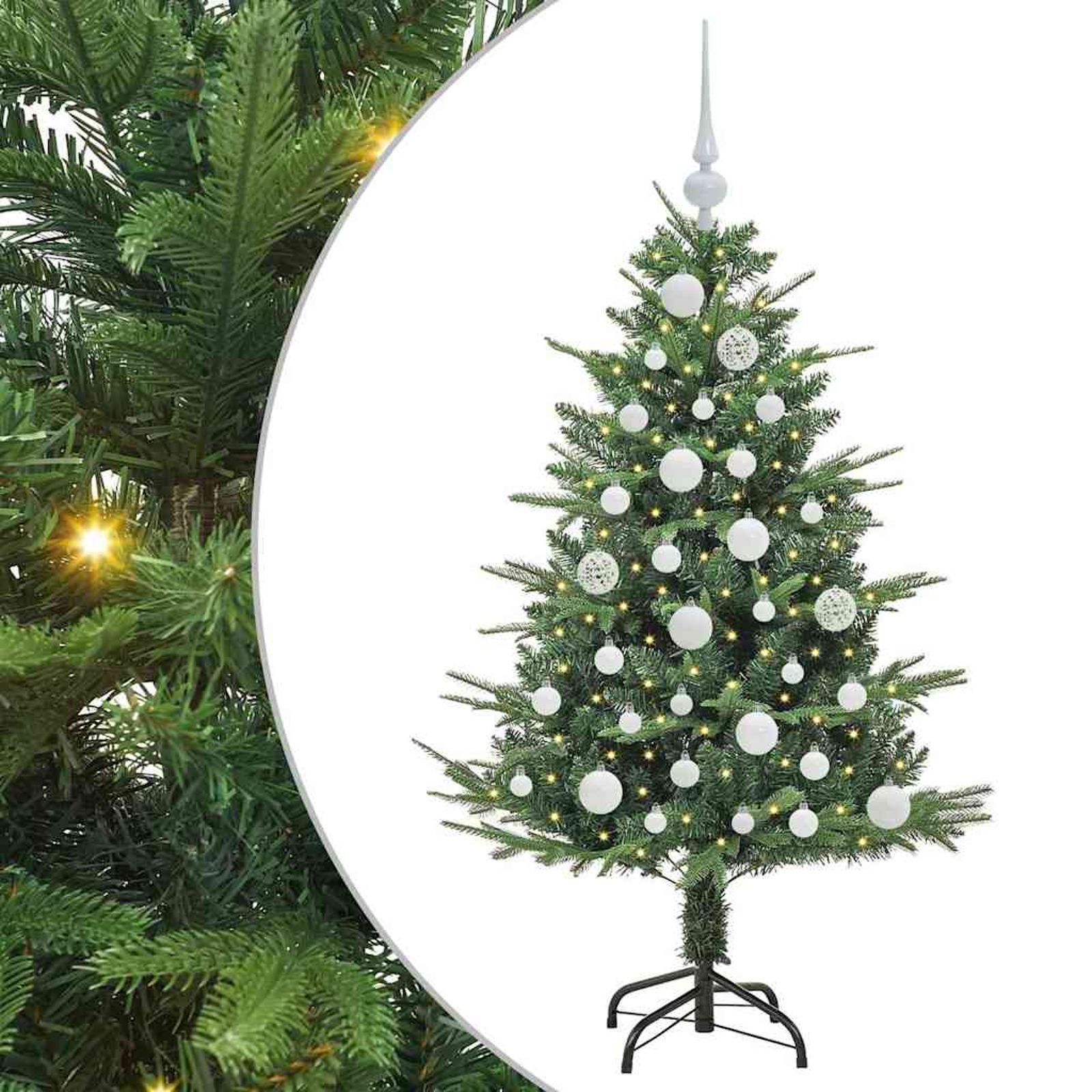 vidaXL Umjetna predsvetljena božićna jelka s kompletom kroglica Zelena