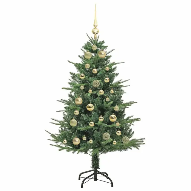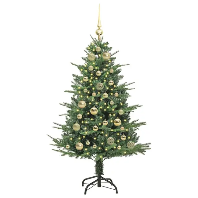 vidaXL Umjetna predsvetljena božićna jelka s kompletom kroglica Zelena