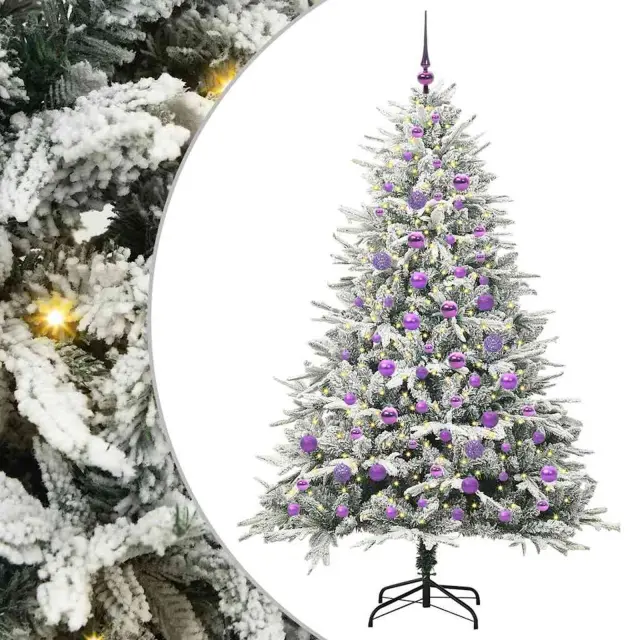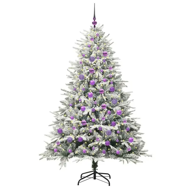 vidaXL Umjetna predsvetljena božićna jelka s kompletom kroglica Zelena