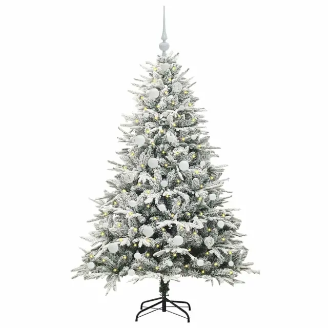 vidaXL Umjetna predsvetljena božićna jelka s kompletom kroglica Zelena