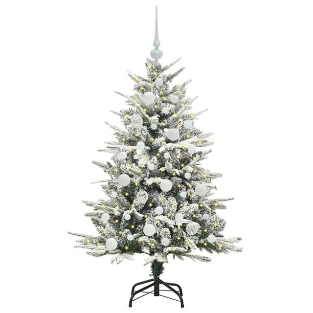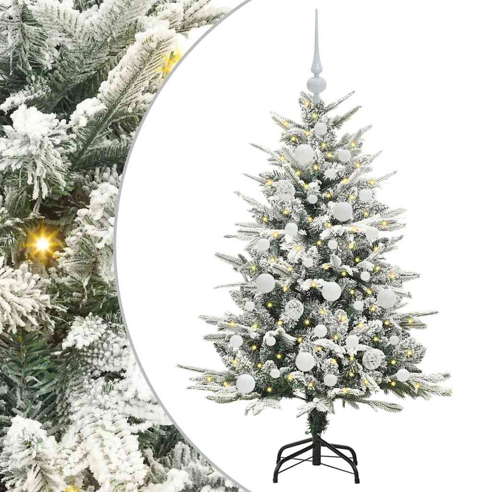 vidaXL Umjetna predsvetljena božićna jelka s kompletom kroglica Zelena