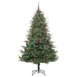 vidaXL Umjetna predsvetljena božićna jelka s kompletom kroglica Zelena